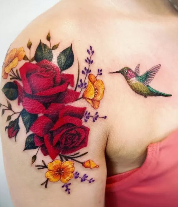 Tribal hummingbird tattoos look great in a single dark color or a combination of black ink for the bottom of the bird and shade for the top half. However, a selling point of tribal shapes and structures is that they can seamlessly fit in. Tribal hummingbird tattoo tribal patterns are complex, for sure.